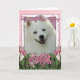 What could say Happy Mother's Day better than this American Eskimo Dog helping you to show how you appreciate the one person who has meant so much! Surrounded by Pink Tulips, your Mother's favourite dog is sure to bring delight on her Special Day! This design is available in over 70+ Dog Breeds. If you don't see your favourite Dog Breed OR if you would like YOUR OWN DOG in this design, just contact me. There is also a version of this design that you can upload your own photo into.