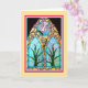 Mother's Day religious card with a pretty Church window on the front. The colours are mixed, with a yellow border surrounding the window.