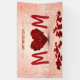Happy Mother's Day illustration featuring a luxury glamour glitter pastel background, text typography "MUM" with a heart shaped red rose bouquet and rose petals.
