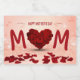 Happy Mother's Day illustration featuring a luxury glamour glitter pastel background, text typography "MUM" with a heart shaped red rose bouquet and rose petals.