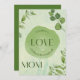 In the garden of life, a mother's love blossoms like vibrant green leaves, nurturing, and evergreen. Celebrating the remarkable strength, grace, and love of mothers everywhere, this special green greeting card is adorned with delicate leaves, symbolising the enduring beauty and resilience of maternal bonds. Send this heartfelt card as a token of appreciation to honour the extraordinary women who fill our lives with endless love and unwavering support. Happy Mother's Day!