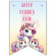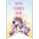 This bunting flag shows two happy, Momma unicorns, with their children, and the permanent text of, "Happy Mother's Day!" on a gradient background. Text on the rest of the flag is customisable, and currently says, "Best Mum Ever!" The images are in pastel colours. Perfect for including at a unicorn-themed event!