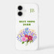 A phone case with a beautiful blumenstrauss bouquet image. The background, image and text can be personalised. Original artwork by W.B.