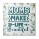 Embrace the essence of maternal love with our enchanting Mother's Day design. It shows a captivating watercolor design, showcasing the delicate beauty of foliage surrounding the heartfelt message, "Moms Make Life Beautiful." This image is a testament to the warmth and joy that mothers bring to our lives. With its unique blend of visual elegance and heartfelt words, it's the perfect tribute to express gratitude and celebrate the wonderful and joyful love of a mother. Share in the beauty of the occasion with this meaningful Mother's Day product.
