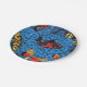 Moths on blue hydrangea paper plate