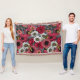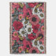 Moths on flower mix in red and grey throw blanket