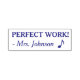 This encouraging rubber stamp design features the encouraging message "PERFECT WORK!" and a customised educator's name. It also features a decorative musical note. It could be used by a teacher or educator when marking assignments, to acknowledge that the student has done a great job.