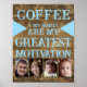 This framed poster print features a rustic design with the quote "Coffee & My Family Are My Greatest Motivation". The print has four family photos, which can be replaced with your own. This poster is a great way to show your love for your family and coffee, and it would make a perfect addition to any home.