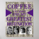 This framed poster print features a rustic design with the quote "Coffee & My Family Are My Greatest Motivation". The print has four family photos, which can be replaced with your own. This poster is a great way to show your love for your family and coffee, and it would make a perfect addition to any home.