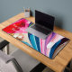 LOVE this desk mat! It's large! It fits across my desk. No need for a small mouse pad now! Color and print are excellent. Quality seems to be excellent too. Delivery was about 3 days sooner than expected. I think this is one of my favorite Zazzle products! Excellent. The color is vibrant and true to what I expected.