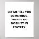 Let me tell you something. There's no nobility in poverty.