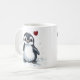 Little penguin coffee mug, with motivational quote: "Be your own penguin, unique, quirky, and proud". With fluffly penguin and heart drawing. Cute motivational gift for friend, family or relatives.