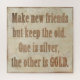 Inspirational and motivational message about friends, that says: "Make new friends but keep the old. One is silver, the other is gold."