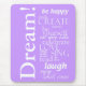 Motivational inspirational words on purple background: love, create, laugh, sing, be yourself, swim in the ocean
