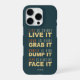 "Life is short - LIVE IT, Love is rare - GRAB IT, Anger is bad - DUMP IT, Fear is limiting - FACE IT". See my store for items with this design.