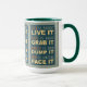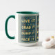 "Life is short - LIVE IT, Love is rare - GRAB IT, Anger is bad - DUMP IT, Fear is limiting - FACE IT". See my store for items with this design.