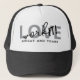 Personalise and customise this motivational love sweat and tears work it gym trucker hat for her. Different colours and edit options are available.