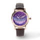 Lovely wristwatch in purple and pink shades, featuring a nature scene with a starry night sky as motif. The text reads "Reach for the stars" and you can of course change the text into something else, like a name, to make personal.