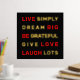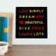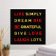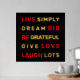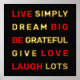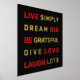 Live simply, Dream big, Be grateful, Give love, Laugh lots motivational quote black and red gold foil print.