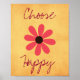 Motivational Quote Choose Happy Poster. Orange cream background with retro inspired flower and the inspirational, motivational words, "Choose Happy"--it's all about the attitude in life!