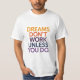 Inspirational typography design featuring the quote “Dreams Don’t Work Unless You Do”. A perfect reminder for hustlers, students, entrepreneurs, and gym lovers who believe in hard work and dedication. Ideal for t-shirts, posters, mugs, stickers, and other custom products. Makes a powerful gift for anyone chasing their goals and striving for success.