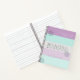 Personalised notebook for all your thoughts and ideas. The design has a colour block stripe in colourful saharan colour palette with trendy abstract doodles and a motivational quote. The quote reads "keep going until you own it!" and is lettered in typewriter text and elegant script. You can also add your name which is lettered in casual handwriting style. This striped pattern is lilac purple mint green and grey. Please browse my store for coordinating items or alternative colours.