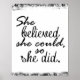 Motivational Quote: She believed she could, so she did quote typography posters and prints. Black and white with vintage antique floral edges. Inspirational reminder affirmation to believe in yourself. See more at Motivate Me. Link below: