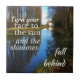 A motivational quote saying "Turn your face to the sun and the shadows fall behind". This is a great gift for someone who you know is facing a difficult challenge.