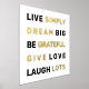 Live simply, Dream big, Be grateful, Give love, Laugh lots motivational quote white gold foil print.