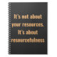 ‘It’s not about your resources. It’s about resourcefulness.’ simple elegant and women encouragement quote with simple text on notebook for office and school kids use. it is fully customizable you can change it as per your choice