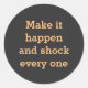 ‘‘Make it happen and shock every one’ simple elegant and inspirational quote with simple text on classic round sticker . it is fully customisable you can change it as per your choice