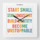 Stay inspired every time you check the clock with this colorful motivational wall clock! Featuring the quote: "START SMALL, STAY CONSISTENT, BUILD IDENTITY, BECOME UNSTOPPABLE," plus your custom text or name ([Text/Name]), it’s perfect for home, office, or study spaces. Let every glance remind you to stay focused, grow steadily, and embrace your unstoppable journey. Part of the Motivational Quote Wall Art collection.