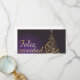 Motivo de Navidad morado oscuro con árbol de Navidad hecho de estrellas doradas con las palabras Feliz Navidad en alemán, en español, en francés, en inglés en una tarjeta de agradecimiento plana de 4 "x 8" (paisaje)