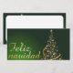 Motivo de Navidad verde con árbol de Navidad hecho de estrellas doradas con las palabras Feliz Navidad en alemán, en español, en francés, en inglés on Thank You Card (landscape)