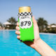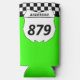 Tailgate in style at your next motocross race with a personalised foam can sleeve. This custom can wrap has a white number plate graphic that's ready to be personalised with your name and bike number. The number plate is set against a bright green background with a black and white chequered flag border.