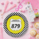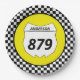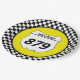 Tailgate in style at your next motocross race with personalised plates. These plates have a white number plate that's ready to be personalised with your name and bike number. The number plate is set against a yellow background with a black and white chequered flag border.