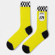 Ride in style at personalised socks. These socks have a white number plate graphic that's ready to be personalised with your name and bike number. The number plate is set against a yellow background with a black and white chequered flag border.