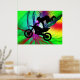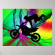 The sports action and energy of motocross athletes are captured in silhouettes of action figures demonstrating extreme tricks and stunts on their motorcycles. Digital paintings and illustrations of these teens and young men include backgrounds of bright, vivid colours and splashes and bursts of light to highlight the action. They also show off in grungy and edgy off road scenes where competitors earn their street creds showing off their motocross skills.