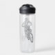 Water bottle with a typography design of a motocross bike and rider made up entirely from phrases, terminology, slang etc, related to motocross.