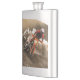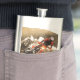 The product is a good size and came exactly as it was pictured. The lid is not attached to the flask, which could be dangerous on drunken nights... The print came out surprisingly well and looks very sharp. Would definitely recommend.