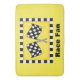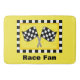 Show your love of motor sports racing with this rug that is great for a home or office. The flag features two black and white chequered flags waving and is surrounded by a black and white checked border. The backround is yellow. The words "Race Fan" can be customised to your own words or a name. This is a fun gift to say congratulations to someone who has won race, wether auto or motorcycle, or any race with a chequered flag. Fully customisable