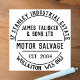 Car parts salvage yard rubber stamp. Motor Salvage Rubber Stamp. Company Name, Business type, plus Two Lines of Address in a circular effect. A business rubber stamp for all kinds of stationery items, envelopes, packages etc. Stamp your return address easily and stylishly. Scrap yard rubber stamp.