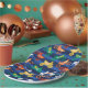 Set of eight 9” paper plates with an image of red, orange, yellow, green and white Motorama dirt bikes on blue. See matching candy jar, espresso cup, flask, mug, pitcher, teapot and coasters. See the entire Father’s Day Plate collection in the FOOD&BEV | Dishes section.