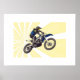 Poster showing a dynamic motorcross rider in action against a yellow geometric background.