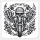 This striking artwork depicts a custom motorcycle adorned with a prominent skull, symbolising fearlessness and adventure. Flanked by majestic wings, the design conveys a sense of freedom and rebellion. A banner above the motorcycle showcases bold phrases that emphasise a carefree lifestyle, encouraging riders to embrace spontaneity without the confines of plans or rules. The detailed elements create a powerful visual statement of the motorcycle culture.