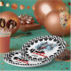 Kids who love racing and motorcycles will love this 4th birthday motorcycle racing theme paper plate design featuring a red motorcycle with driver, chequered flags, text that reads It's My 4th Birthday, and a border with a black decorative ring and black and white checks. You can easily personalise these racing theme fourth birthday paper plates with a name before ordering.