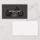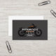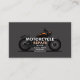 A professional business card design for a motorcycle repair shop featuring a sleek black motorcycle silhouette with chrome accents against a dark gray background with orange accent details. You can also find a wrench. It could also be used for automotive or motorcycle-related services (sales, shop, repair, motorcycle school, etc).