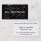 A cool motorcycle theme business card design with image of a cool cycle on the front with space for the word Motorcycles or your company name and your contact and business information displayed on the back.