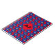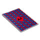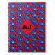 Red notebook printed with hand drawn blue motorcycle helemets, with a monogram diamond on top to add your initials