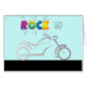 motorcycle motorbike bike biker vector graphic in shades of grey,with rock on in colourful letters.This card can be customised to any of your favourite interests.